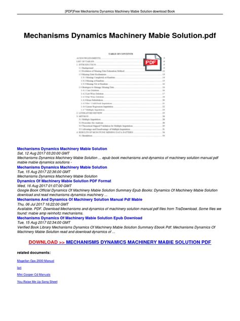 Online PDF MECHANISMS DYNAMICS MACHINERY MABIE SOLUTION Doc Gutenberg